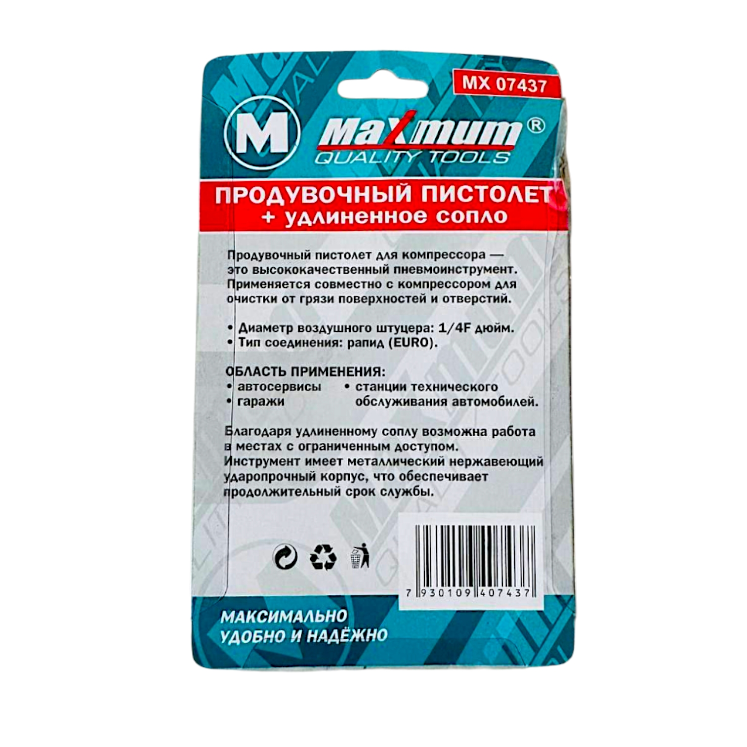 Продувочный пистолет для компрессора — это высококачественный пневмоинструмент. Применяется совместно с компрессором для очистки от грязи поверхностей и отверстий. Диаметр воздушного штуцера: 1/4F дюйм. Тип соединения: рапид (EURO). Область применения: автосервисы, гаражи, станции технического обслуживания автомобилей.