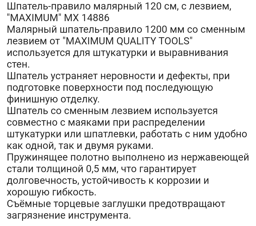 Малярный шпатель-правило 1200 мм со сменным лезвием от "MAXIMUM QUALITY TOOLS" используется для штукатурки и выравнивания стен.