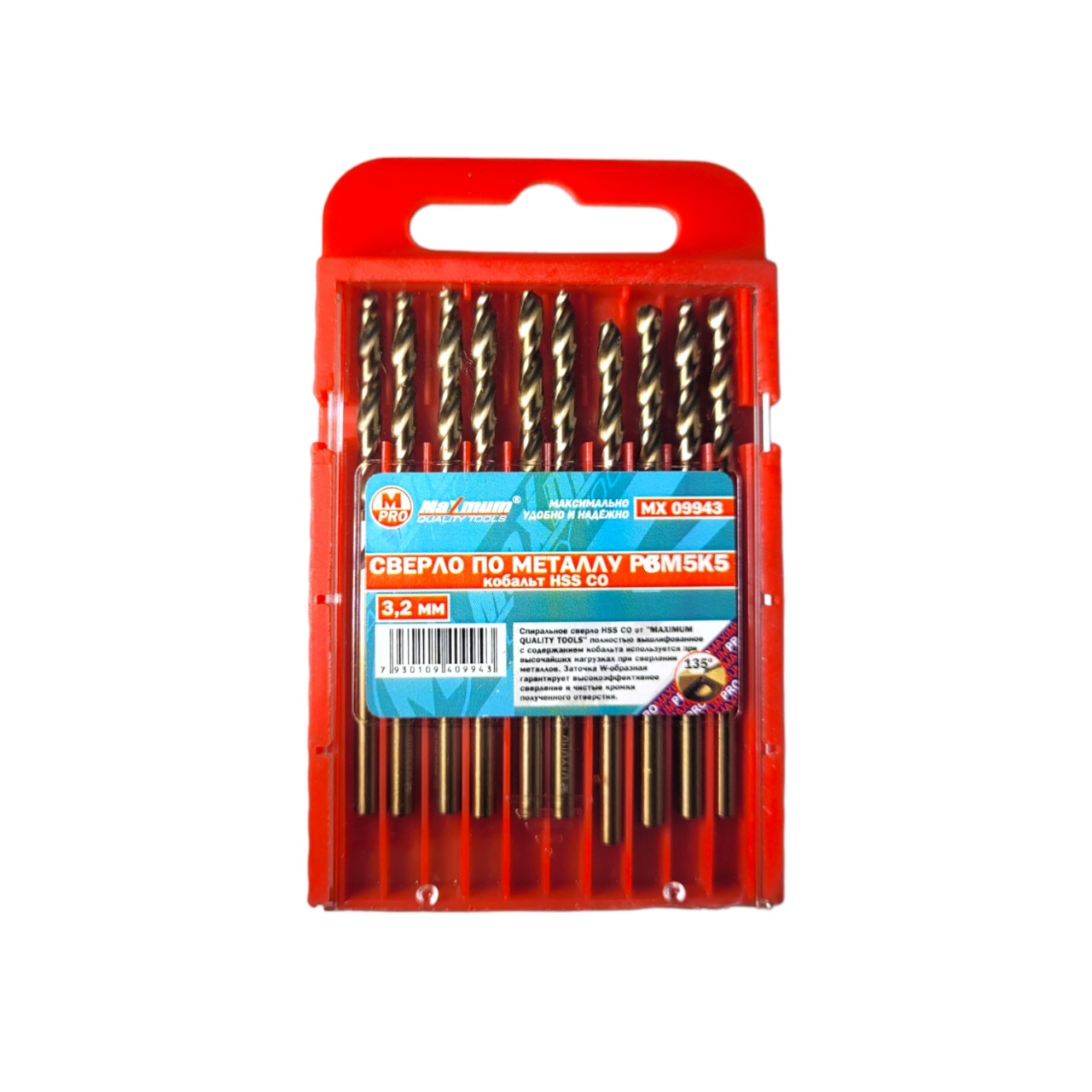 Профессиональные кобальтовые сверла 3,2 мм HSS от бренда "MAXIMUM QUALITY TOOLS" имеют цилиндрический хвостовик для дрели и шуруповерта.